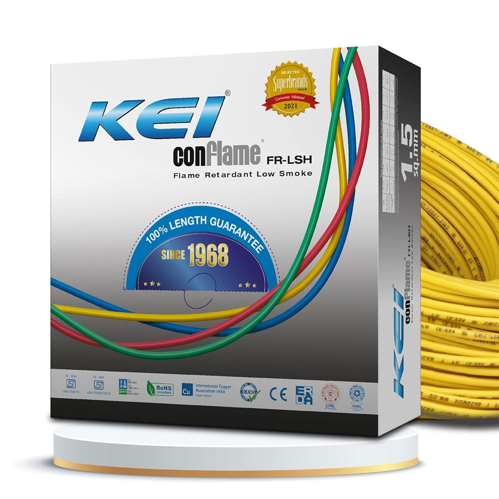 KEI house wires are flame-retardant, high-quality conductors ideal for residential and commercial wiring. These wires offer enhanced safety, high insulation resistance, and long-term performance in daily electrical installations.